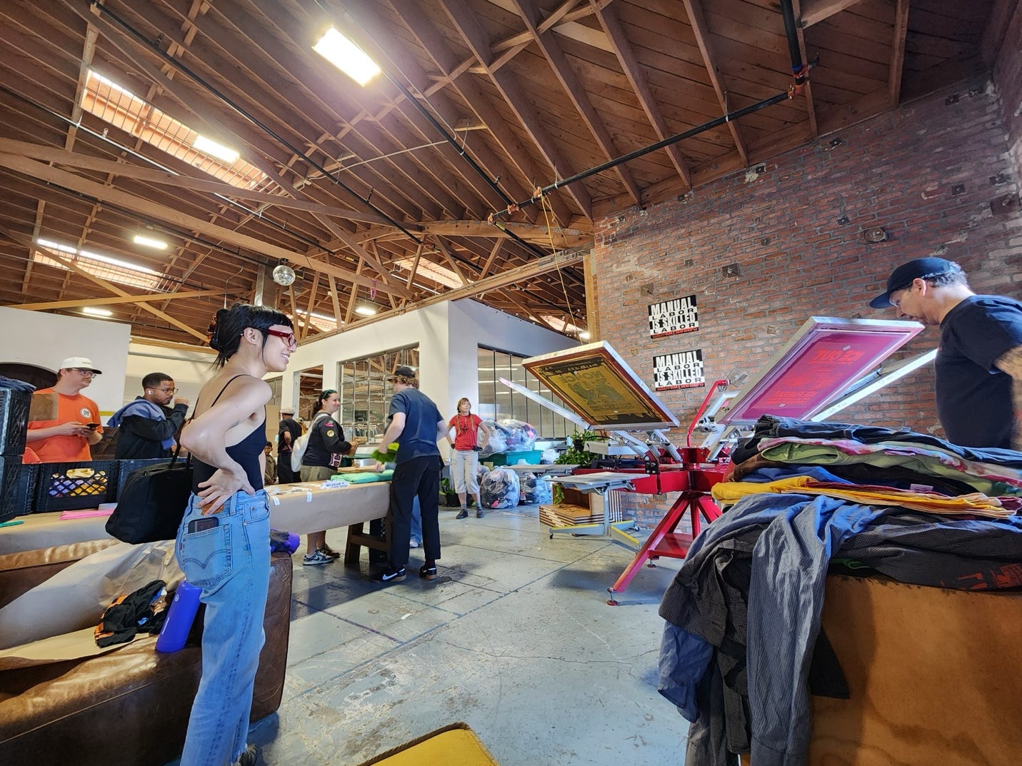 Graphic t-shirt pollution is destroying the world, but graphic tees are popular to share protest messages. Suay, a Los Angeles-based sewing and production shop, has resolved this contradiction of principles between sustainability and justice. Suay collects post-consumer waste and deadstock. Then, it employs skilled garment workers to remake them into new garments. On February 1st, Suay set up racks of donated t-shirts and sweatshirts and used a six-screen hand screen printer to give the old shirts new life as “No Ice” protest wear. Suay shows how the revolution “will not be televised”, but should be reprinted on second-hand graphic tees.